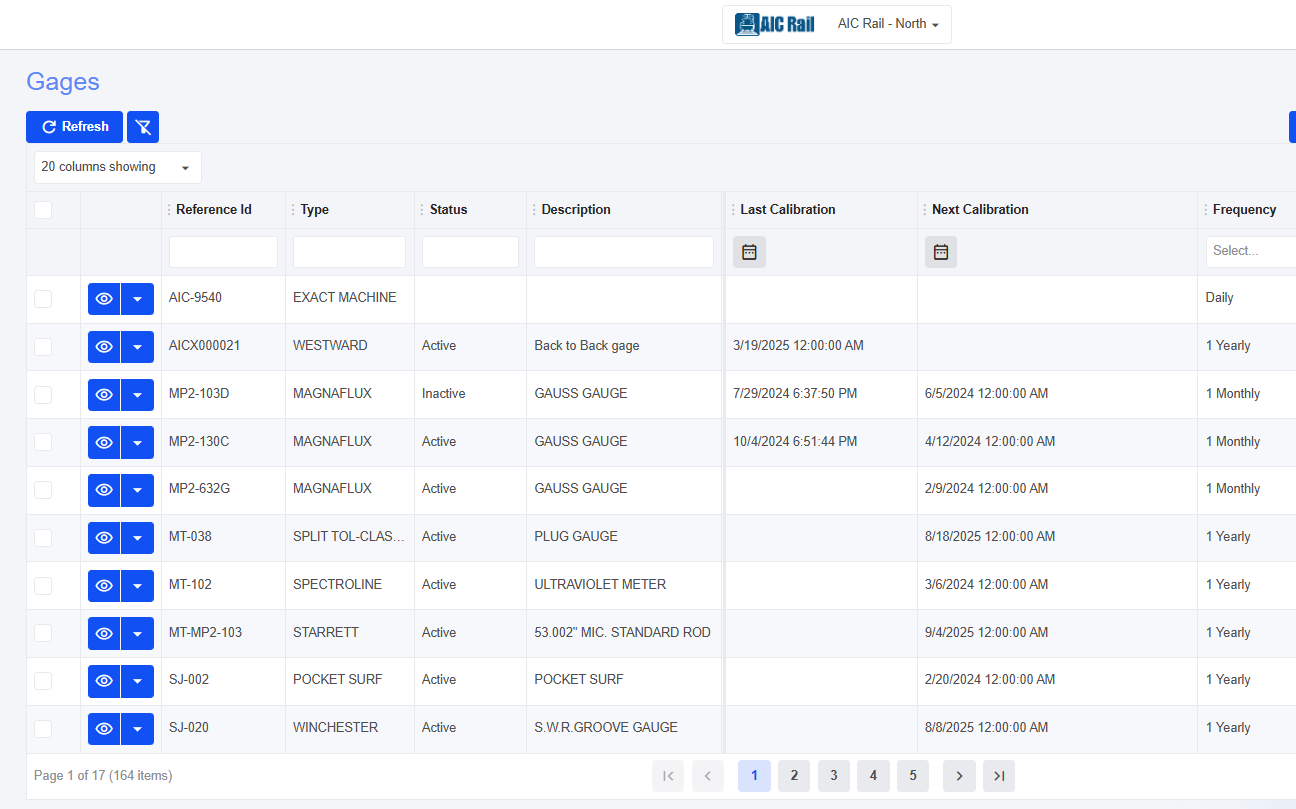 Gauge Calibration Tracking Software for Rail & Manufacturing Shops