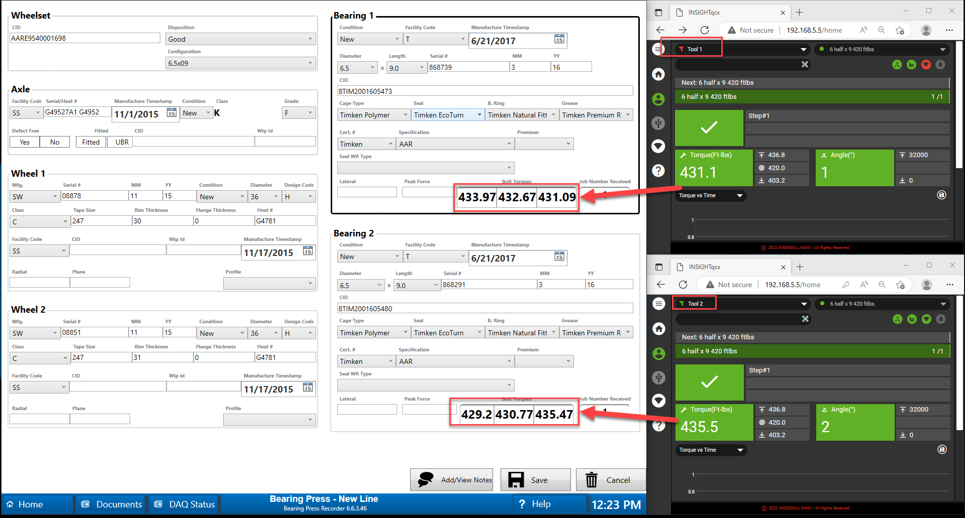 Bearing Torque Recording - Automatically capture bearing cap screw torques from automated equipment. Click here for details.